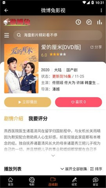 微博兔影视是安卓端聚合型影视播放工具,主打全品类免费观影追剧,无会员充值门槛,覆盖院线新片、国产剧、日韩欧美剧、综艺、动漫番剧全题材内容。整合多源高清播放线路,搭载智能解析引擎,支持断点续播、剧集联播、离线缓存、大屏投屏四大核心体验,内置多维度筛选与全网检索功能,精准解决用户片荒、找片难、付费观影等痛点,专为移动端碎片化追剧人群打造,资源每日同步更新,连载剧集实时追更。