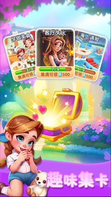 完成学做美食、客厅失火、海上遇险等主题关卡的合成目标,即可积累公益能量,推进主线剧情