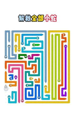 线条拆解的关卡,别死盯着明面给的线条数死磕。先把画面边框、标题文字、背景空白处全点一遍,绝大多数隐藏线条都藏在这些没人注意的地方,找全了隐藏线条,通关就是顺理成章的事。解救小蛇的关卡,别按顺序挨个解线条,先看蛇头蛇尾的朝向,优先挪走挡着出口的短线,再处理长线条,顺序错了只会越解越乱,最后直接把通关路径锁死。
