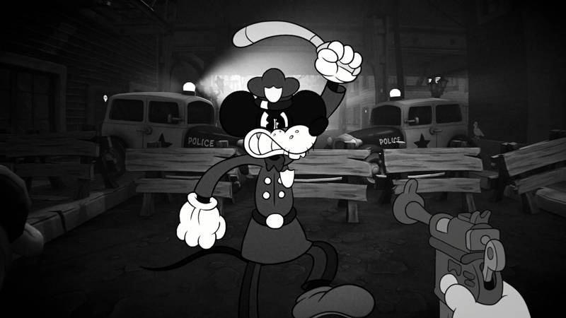橡皮管动画FPS独一份没平替,1930年代黑白老动画画风混搭硬核射击,松节油枪溶解敌人墨水的击杀动画既恶搞又暴力美学拉满,市面上根本找不到第二款同风格游戏