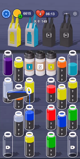 Q:游戏打到一半卡关了瓶子越倒越乱怎么办