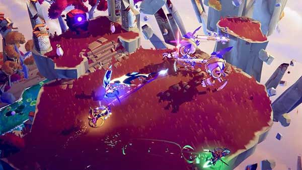 美术像玩具模型般精巧可人:采用极其明亮鲜艳的卡通渲染风格,场景设定在天空中的机械之城,浮空岛屿3D俯视角配合预设视角旋转,整个世界像一个巨大的精致玩具模型,与《死亡细胞》的暗黑像素风形成鲜明反差。