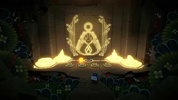全程没一句台词,没打怪、没死亡惩罚,甚至连失败的设定都没有,就讲一块圆滚滚的小石头布尔德,在深山里碰到了一颗从银河掉下来的小星星格罗,决定陪着它钻过沉睡千年的古老山洞、踏过失落的远古遗迹,一路找路回天上的故事。
